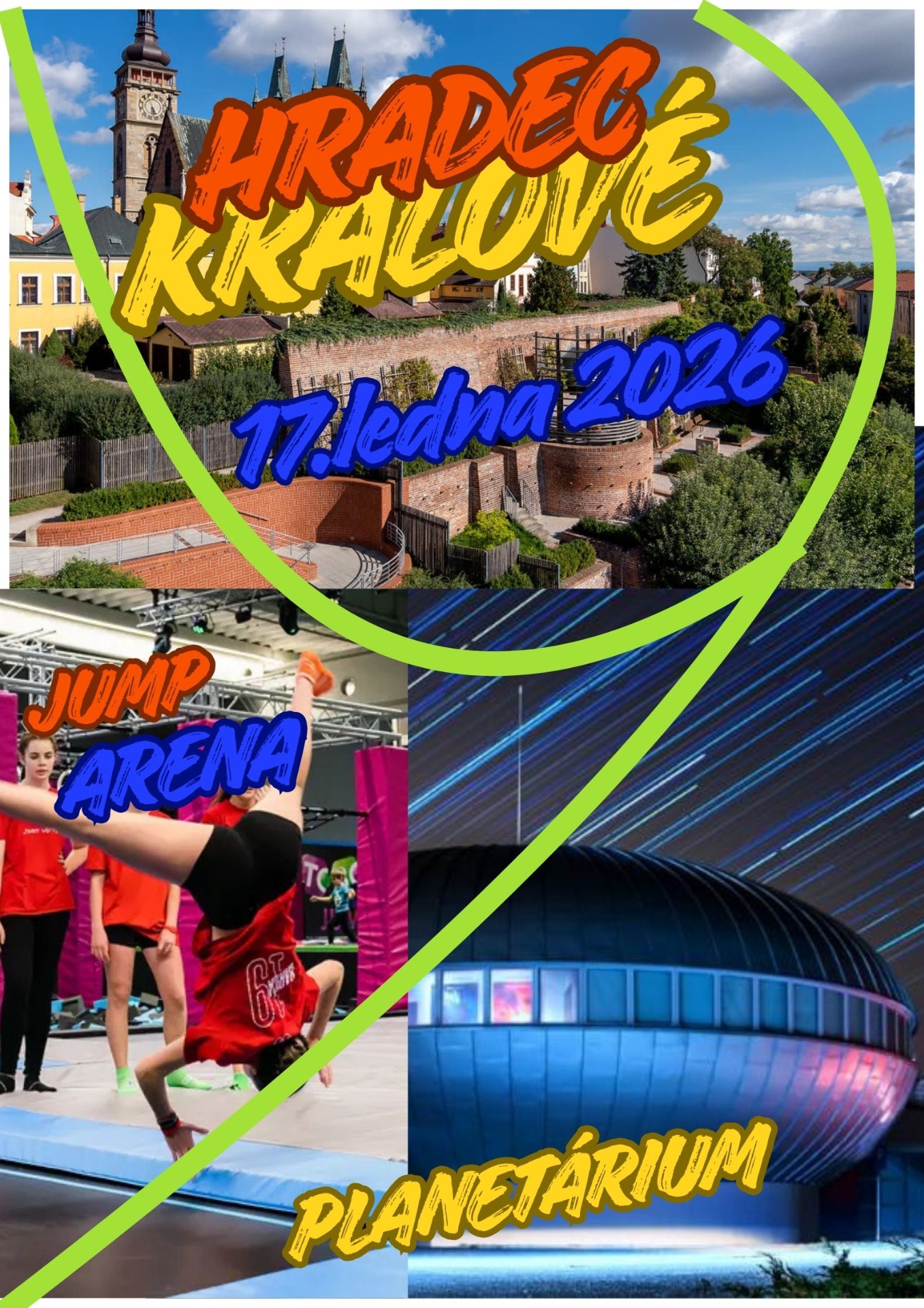 Těšte se na akcí nabitou výpravu do hlavního města Královohradeckého kraje. Navštívíme trampolínovou arenu a podíváme se do planetária kde nám mimo jiné promítnou film 3-2-1 Start. Sebou s vezměte jídlo a pití na celý den a protiskluzové ponožky, které je nutné mít do Jump areny. Pokud je nemáte dají se na místě koupit za 60,-Kč. Kapesné dle Vašeho uvážení